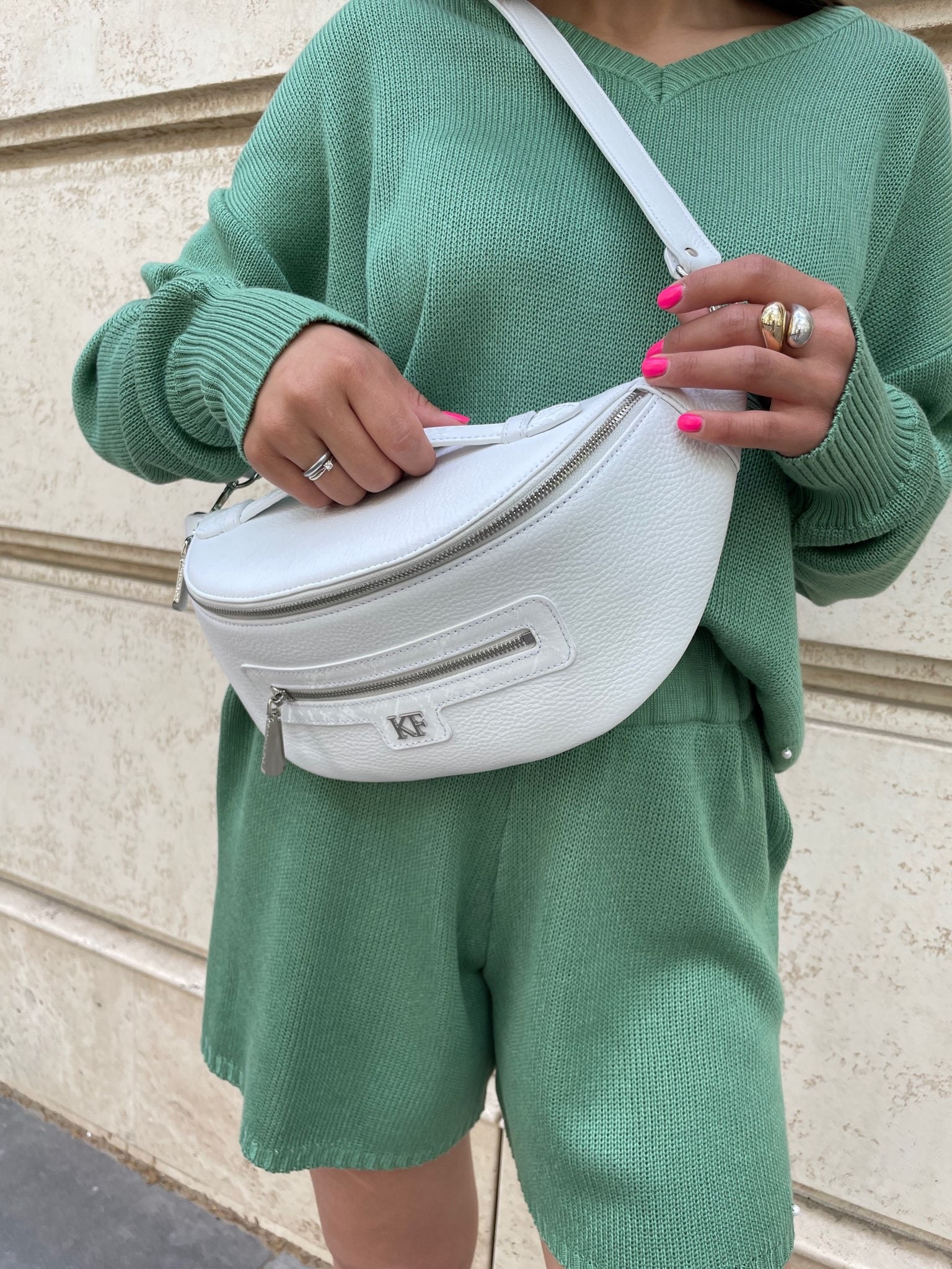 Beige genuine leather woman shoulder bag from ukrainian designer Katerina Fox. Women's laconic bag of leather will be necessary a stylish addition to many relevant images. Inside the bag one large compartment, one patch pocket and one zipper pocket, bag closes with a zipper. The handle length is adjustable.