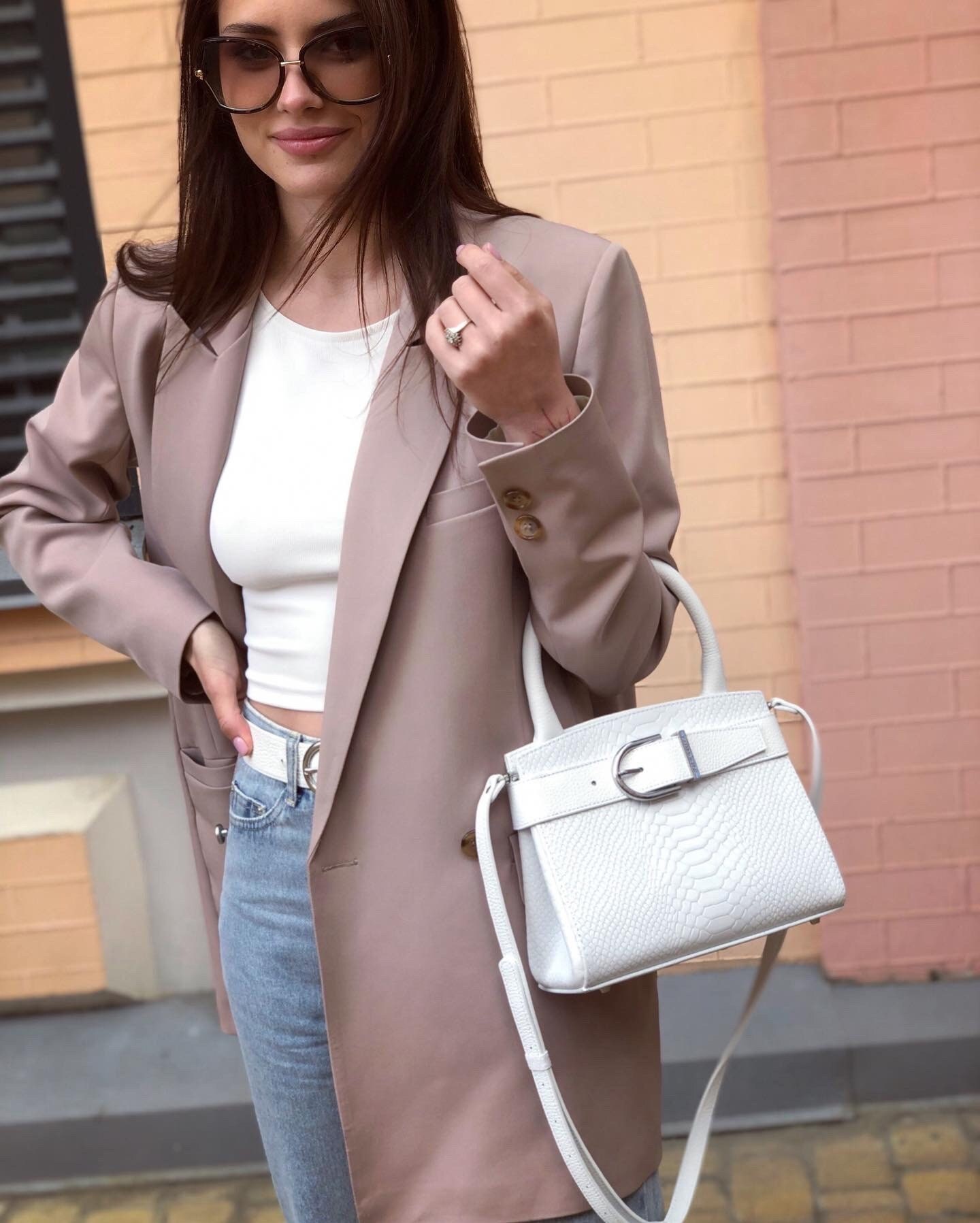 Leather Top Handle Bag, Gray Beige Leather Handbag Top Handle, Women's Leather Bag KF-2701