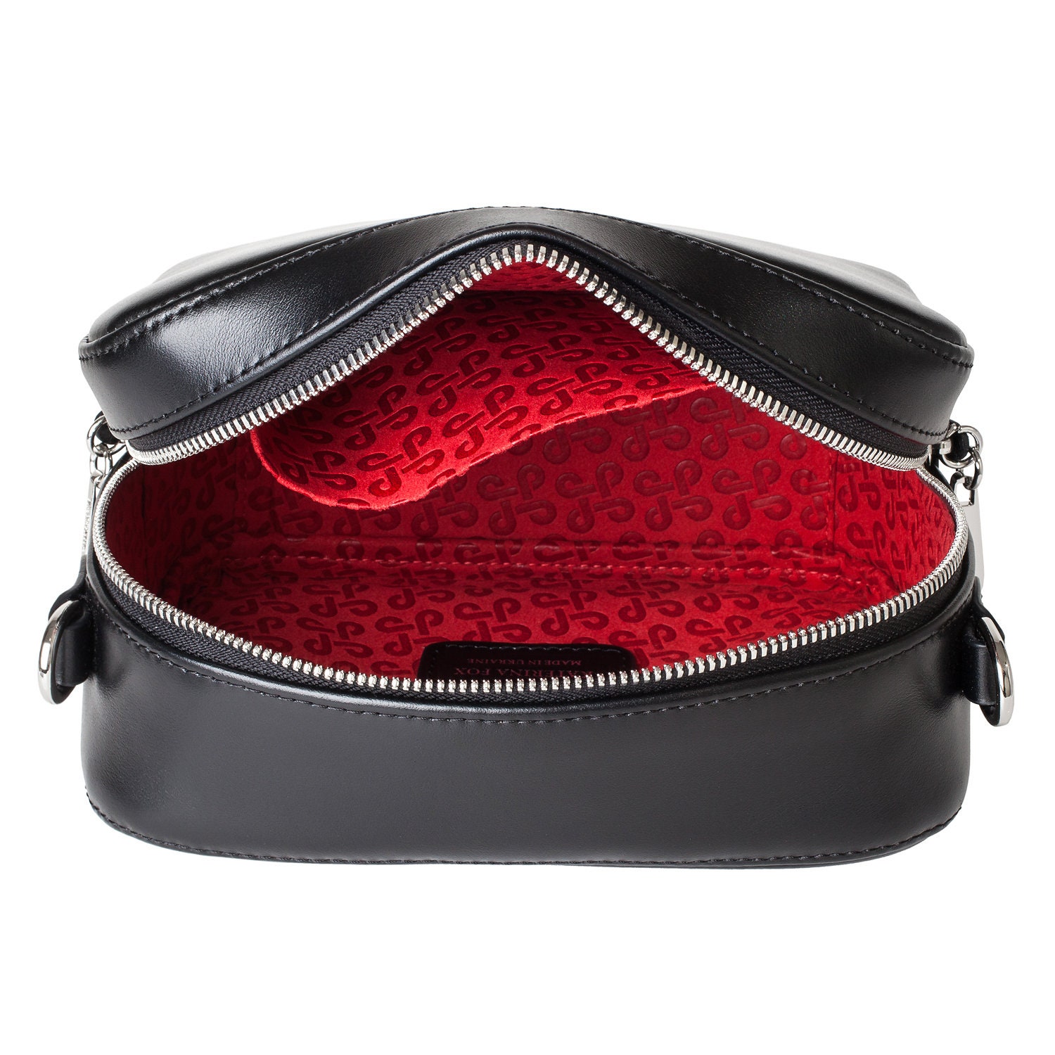 Black genuine leather woman shoulder bag from ukrainian designer Katerina Fox. Fashionable and elegant modern bag KF for bright girls and women. This bag is able to attract attention and highlight your exquisite taste. The internal space of a bag is equipped with one spacious compartment and one zipper pocket. The bag is closed with a zipper. The length of the strap is adjustable. The kit also includes a storage bag.